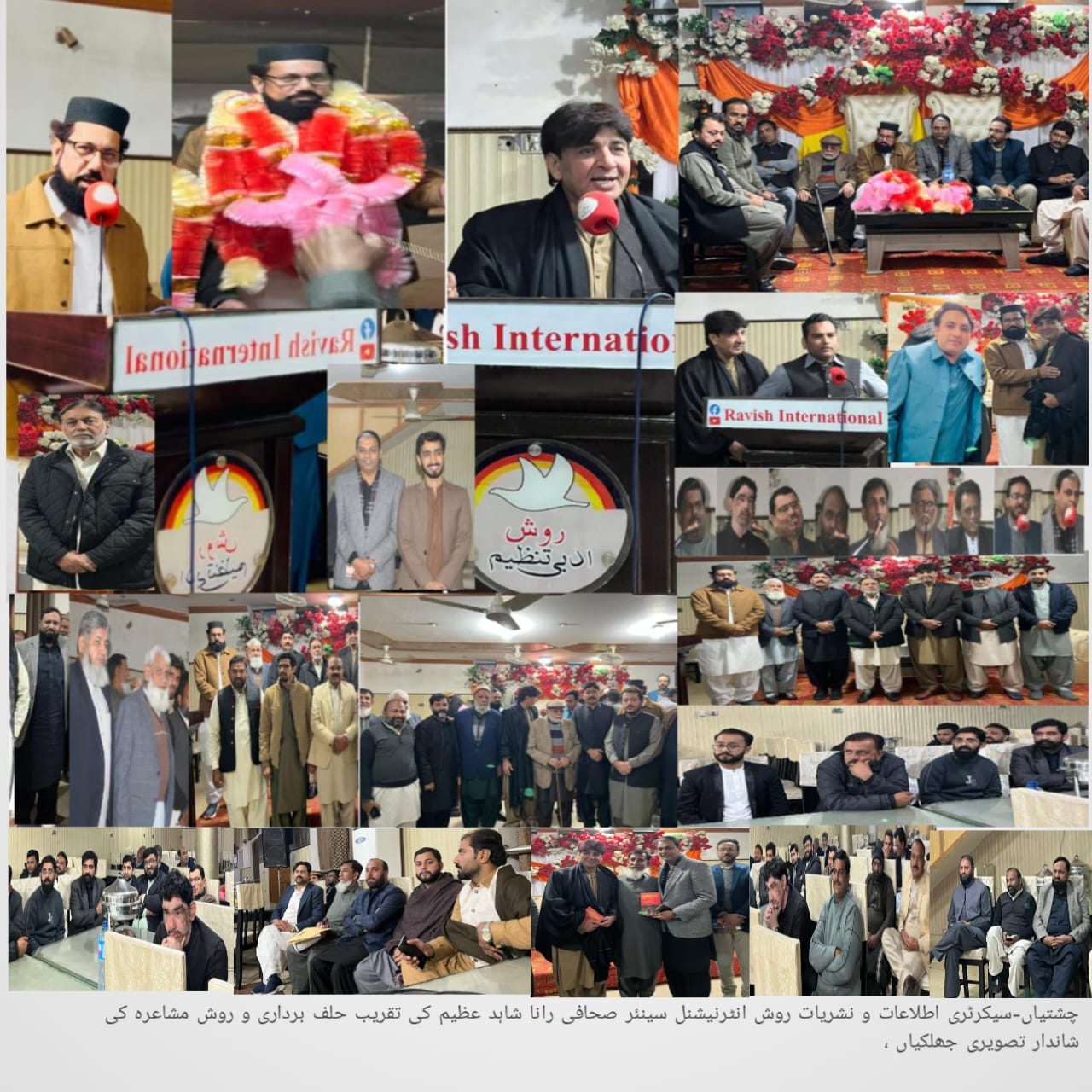 چشتیاں(رانا کلیم احمد سے )سینئر صحافی رانا شاہد عظیم روش انٹرنیشنل ادبی تنظیم کے سیکرٹری اطلاعات و نشریات منتخب ہوگئے اس حوالے سے نجی میرج ھال میں ایک پُروقار تقریب حلف برداری و روش مشاعرہ کا انعقاد ہوا ، مرکزی سرپرستِ اعلیٰ روش انٹرنیشنل حاجی عبدالستار نے نومنتخب سیکرٹری اطلاعات ونشریات رانا شاہد عظیم سے حلف لیا ، تقریب کی میزبانی سینئر صحافی رانا شاہد عظیم نے کی ، تقریب کے معزز مہمانوں کیلئے پُرتکلف ڈنر کا اہتمام بھی کیا گیا تفصیلات کے مطابق تقریب حلف برداری و روش مشاعرہ کی صدارت ملک کے نامور شاعر امجد خان تجوانہ نے کی ،نقابت کے فرائض روش کی جان سید علی شاہ نے سر انجام دیئے ، تقریب حلف برداری و روش مشاعرہ کا باقاعدہ آغاز تلاوت قرآنِ مجید سے ہوا بعدازاں سیکرٹری اطلاعات ونشریات روش انٹرنیشنل و سینئر صحافی چشتیاں رانا شاہد عظیم نے نعتِ رسولِ مقبولﷺ پڑھنے کی سعادت حاصل کی ، اس موقع پر تقریب حلف برداری و روش مشاعرہ کے میزبان سیکرٹری اطلاعات و نشریات رانا شاہد عظیم نے تقریب سے خطاب کرتے ہوئے کہا ہے کہ میں پیشے کے اعتبار سے ایک تاجر ہوں اور عرصہ 20سال سے شعبہ صحافت سے وابستہ ہوں مجھے خوشی ہے کہ میں آج روش فیملی کا حصہ ہوں روش انٹرنیشنل ایک تنظیم ہے جو ادب کے فروغ کیلئے کام کررہی ہے روش فیملی کی محبتوں کا انتہائی مشکور ہوں کہ جنہوں نے اپنی گھنی چھاؤں میں جگہ دی اور مجھ پر اعتماد کا اظہار کرتے ہوئے سیکرٹری اطلاعات و نشریات کے عہدے کیلئے منتخب کیا میں انشاءاللہ دوستوں کے اعتماد پر پورا اترنے کی کوشش کرونگا جنہوں نے مجھے روش انٹرنیشنل ادبی تنظیم میں کام کرنے کا موقع فراہم کیا ہے انہوں نے تقریب حلف برداری و روش مشاعرہ میں تھانہ سٹی اے ڈویژن چشتیاں ماجد حسین پراچہ ، SHO سٹی بی ڈویژن چشتیاں بلال یونس اور کرائم فائٹر سب انسپکٹر خیرپور سید فضل عباس شاہ کو بطور مہمانِ خصوصی شرکت کرنے پر اور دیگر معزز مہمانوں کی کی تشریف آوری پر انکا شکریہ ادا کیا اس موقع بانی روش انٹرنیشنل سید ثناءاللہ شاہ نے رانا شاہد عطیم کو سیکرٹری اطلاعات و نشریات روش چشتیاں کا حلف اٹھانے پر مبارکباد دی انہوں نے اپنے خیالات کا اظہار کرتے ہوئے کہا ہے کہ روش ایک ادبی تنظیم ہے اور یہ لوگوں سے چندہ لئے بغیر اپنی مدد آپکے تحت کام کر رہی ہے سیلاب زدگان یا دیگر قدرتی آفات سے متاثرہ لوگوں تک راشن خوراک یا کپڑے ضروری اشیاء ونقدی پہچانے کیلئے روش فیملی نے اس کام کو محض عبادت سمجھ کر ہمیشہ بڑھ چڑھ کر حصہ لیا ہے روش انٹرنیشنل فلاحی کام کررہی ہے انہوں نے کہا ہے کہ نوجوان نسل کو منشیات جیسی لعنت سے بچانے کیلئے روش انٹرنیشنل ادبی تنظیم انکو ادب کی طرف متوجہ کررہی ہے روش نیکی اور فلاحی کاموں میں ہمیشہ پیش پیش رہی ہے اور آئندہ بھی روش اس سے بڑھ کر اہم کردار ادا کرے گی اس موقع پر ضلعی صدر انجمن تاجران و صدر روش پنجاب حاجی حمید احمد صدیقی، سینئر نائب صدر انجمن تاجران چشتیاں وصدر صرافہ و مرکزی نائب صدر روش انٹرنیشنل رانا علی رضا عابد، نائب صدر انجمن تاجران چشتیاں و نائب صدر پاکستان روش انٹرنیشنل محمد کاشف بھٹی، صدر روش سینٹر چشتیاں چوہدری نسیم صادق اوڑیا، مہمانِ خصوصی انچارج سینٹیشن بلدیہ چشتیاں شاہد حسین بلوچ، مہمان خصوصی شاعر ریحان بشیر، شاعر عبدالقدوس کیفی، شاعر الله داد پراچہ، شاعر محمود آسی ، چوہدری بلال بشیر، میاں رضوان، صدر روش حاصل پور تنویر پراچہ، ذولفقار چوھان، سینئر صحافیوں رانا کلیم احمد رانا غلام حیدر، رانا محمد انوار، کاشف ملک ، رانا محمد علی شاھد، چوہدری احمد حسن برکات جٹ، چوہدری ذیشان عرف شانی جٹ، چوہدری فہیم گلزار سب انجئیر لوکل گورنمنٹ اور روش فیملی سمیت دیگر شعراء کرام و تمام معزز شرکاء نے تقریب کے میزبان سینئر صحافی رانا شاہد عظیم کو روش انٹرنیشنل کا سیکرٹری اطلاعات و نشریات منتخب ہونے پر انہیں مبارکباد پیش کی اور ان سے نیک خواہشات کا اظہار کیا آخر میں میزبان نے تقریب کے تمام شرکاء کی تشریف آوری پر انکا تہہ دل سے شکریہ اد