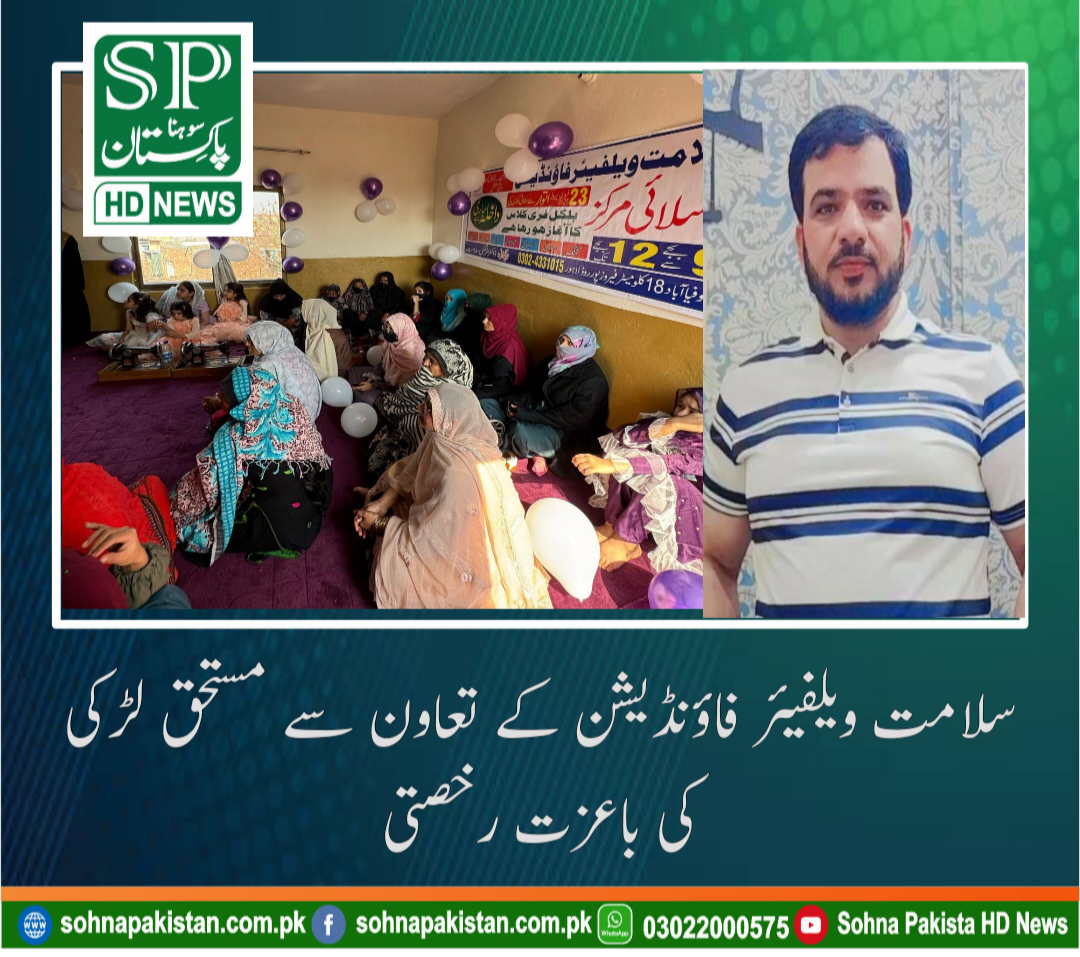 لاہور (رانا شہزاد چیف رپورٹر ) کے مطابق انسانیت کی خدمت کے جذبے سے سرشار سلامت ویلفیئر فاؤنڈیشن ایک بار پھر امید کی کرن بن کر سامنے آئی، جب فاؤنڈیشن کے زیرِ اہتمام سلائی کا کورس مکمل کرنے والی ایک مستحق لڑکی کی شادی کامیابی سے پایۂ تکمیل تک پہنچائی گئی۔