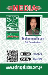 محمد اسلام کو قصور میں روزنامہ سوہنا پاکستان، لاہور کا کیمرہ مین مقرر کیا گیا ہے۔ تمام سرکاری و نیم سرکاری ادارے نوٹ فرمالیں.