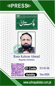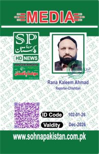 رانا کلیم احمد کو چشتیاں میں روزنامہ سوہنا پاکستان، لاہور اور روزنامہ پاکستان نیوز، لاہور کا رپورٹر مقرر کیا گیا ہے۔ تمام سرکاری و نیم سرکاری ادارے نوٹ فرمالیں.