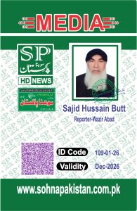 ساجد حسین بٹ کو وزیر آباد میں روزنامہ سوہنا پاکستان، لاہور کا رپورٹر مقرر کیا گیا ہے۔ تمام سرکاری و نیم سرکاری ادارے نوٹ فرمالیں.