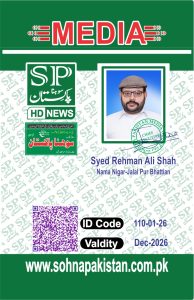 سید رحمان علی شاہ کو جلالپور بھٹیاں میں روزنامہ سوہنا پاکستان، لاہور کا نامہ نگار مقرر کیا گیا ہے۔ تمام سرکاری و نیم سرکاری ادارے نوٹ فرمالیں.