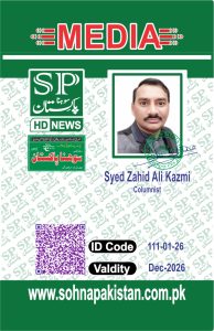 سید زاہد علی کاظمی کو ضلع قصور میں روزنامہ سوہنا پاکستان، لاہور کا کالم نگار مقرر کیا گیا ہے۔ تمام سرکاری و نیم سرکاری ادارے نوٹ فرمالیں.